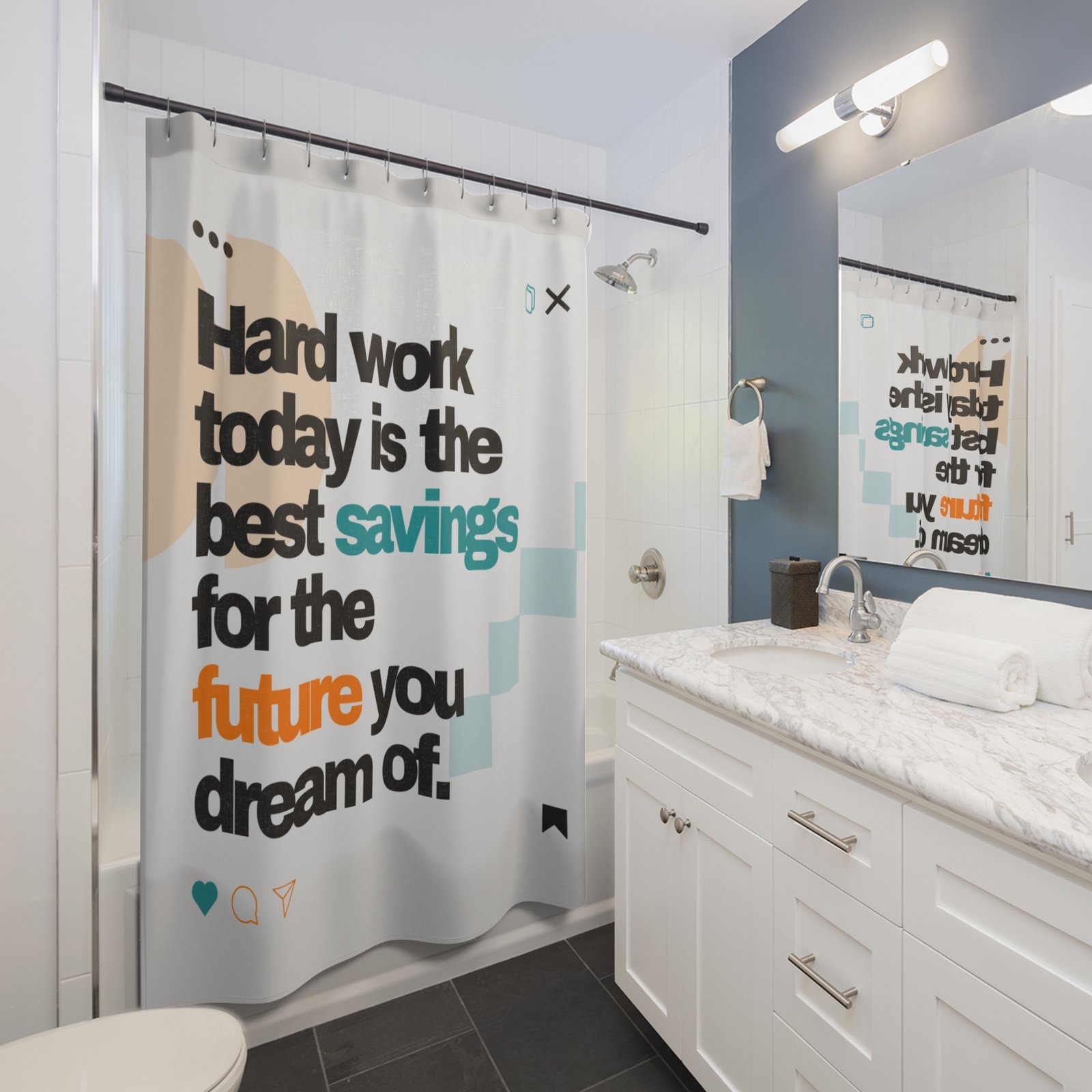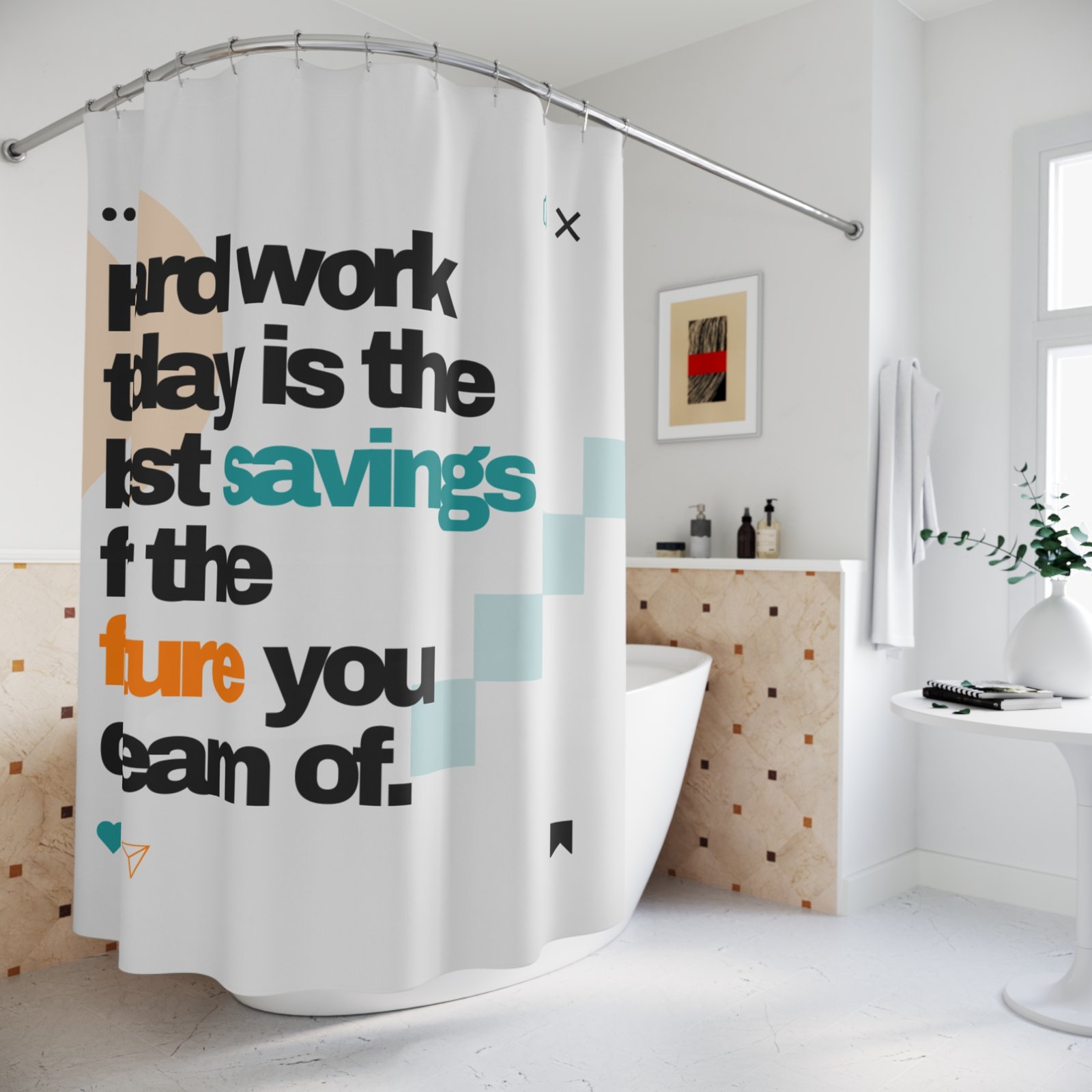 Be the first to review “Hardwork today is the best savings for the future you dream of. Motivational Shower Curtain”