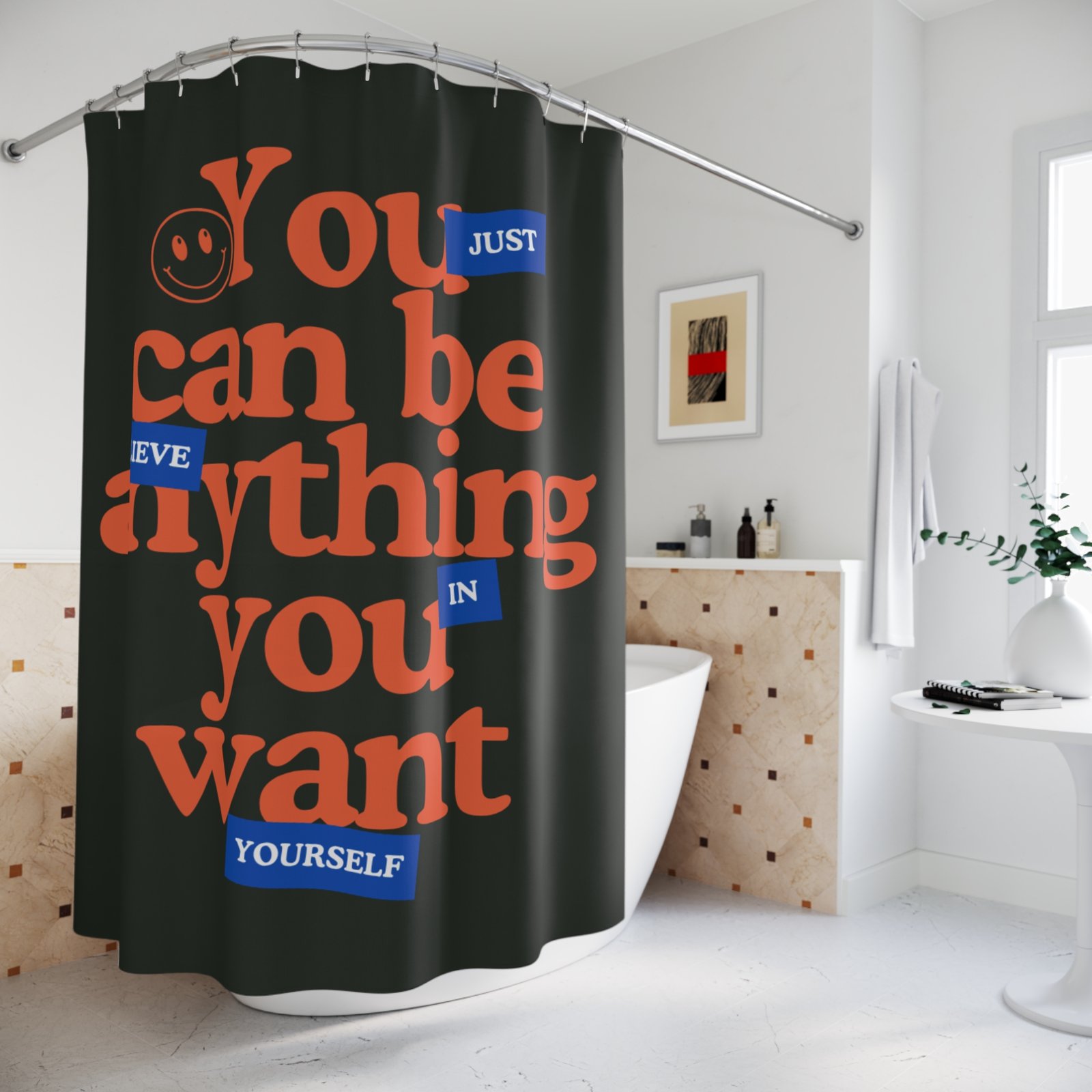 Be the first to review “Just believe in yourself. You can be everything you want Motivational Shower Curtain”
