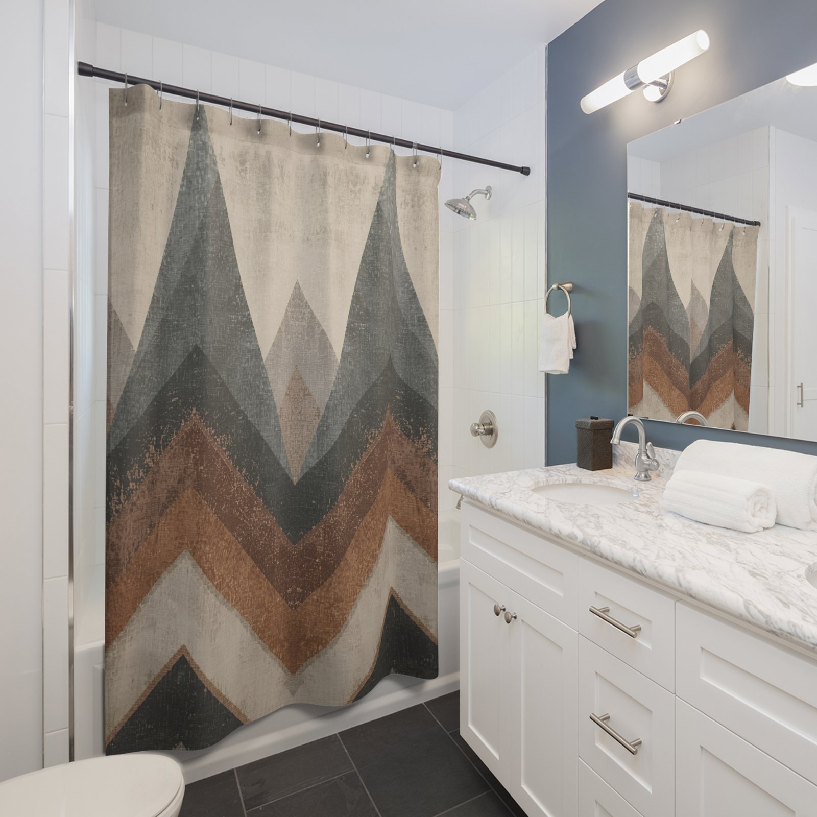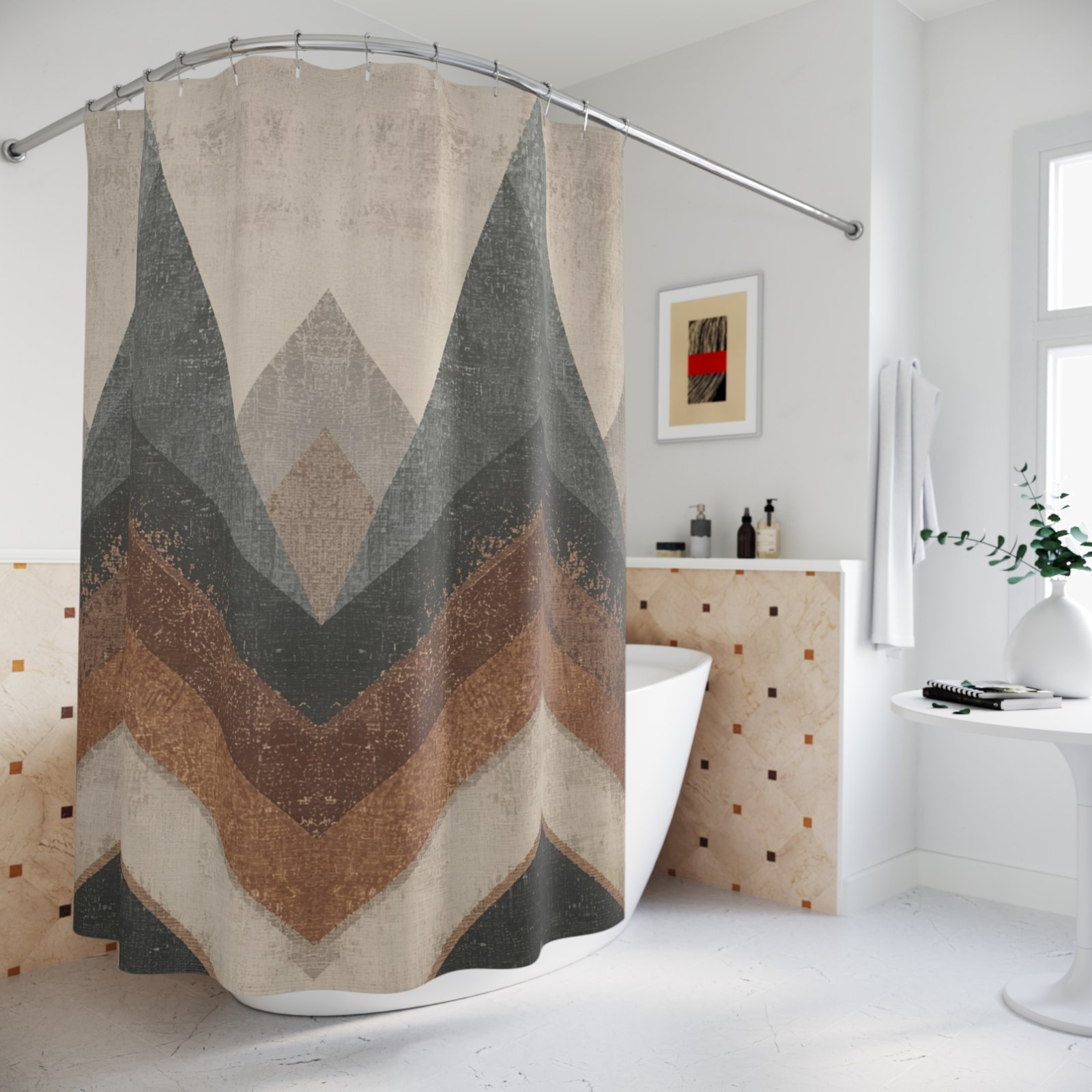 Transform your bathroom into a serene retreat with this elegant shower curtain. Its modern, geometric design brings an earthy vibe, perfect for creating a calming atmosphere. Ideal for those who appreciate minimalist aesthetics, this shower curtain effortlessly complements various décor styles. Perfect for spring refreshes, home renovations, or as a thoughtful gift for housewarmings and weddings, it caters to homeowners and renters alike. Celebrate the changing seasons or bring a fresh look during special occasions with this stylish addition to your space.