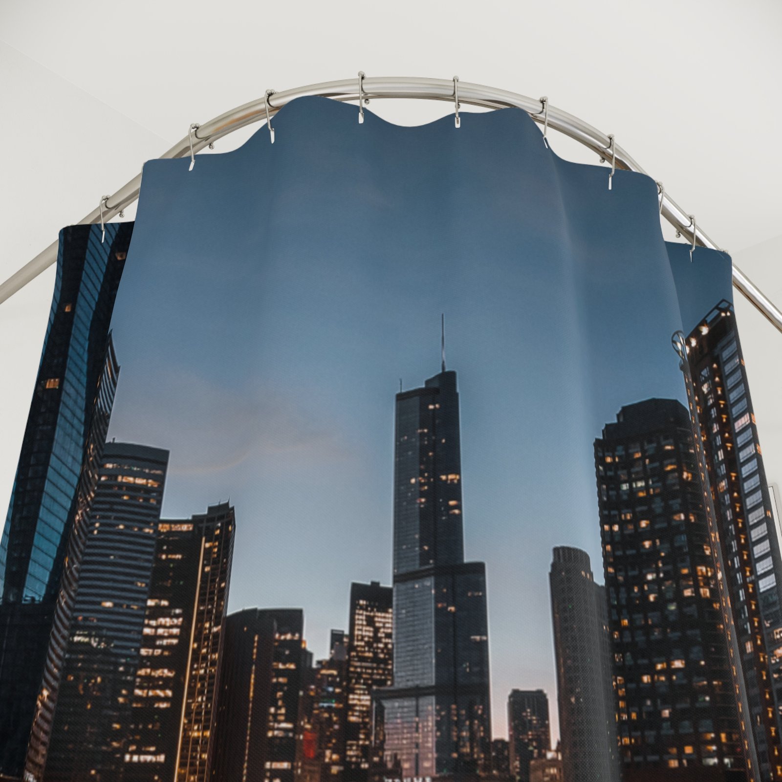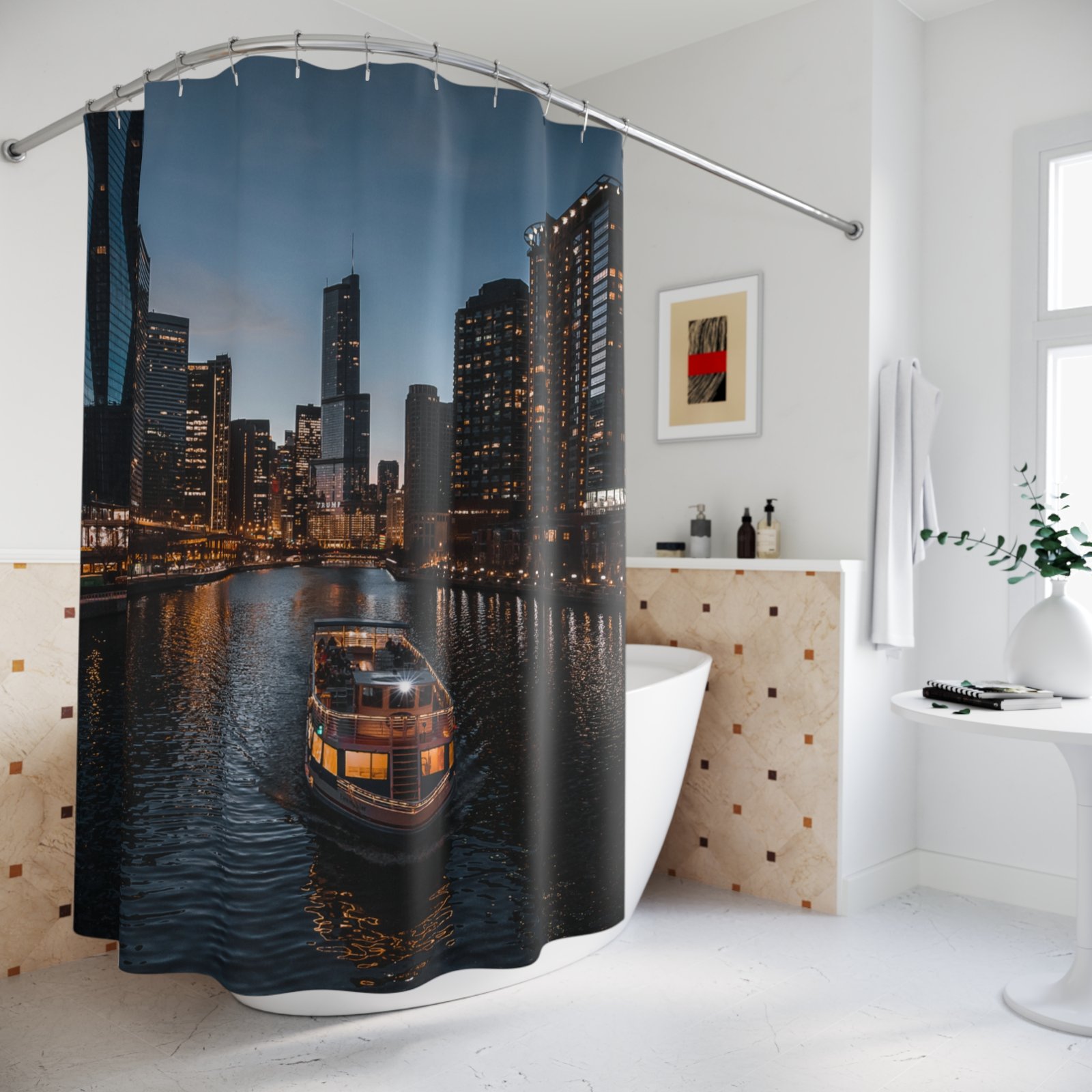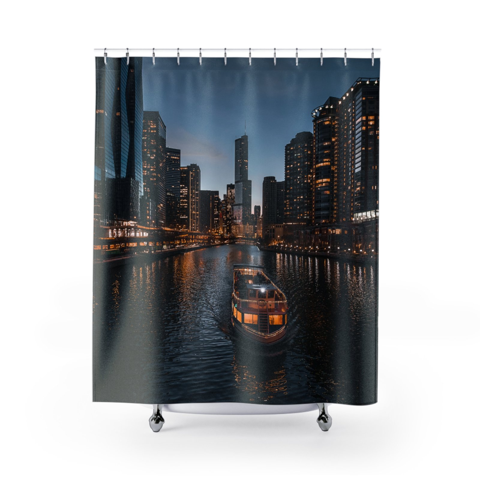Be the first to review “Riverside Evening Glow Cityscape Shower Curtain”