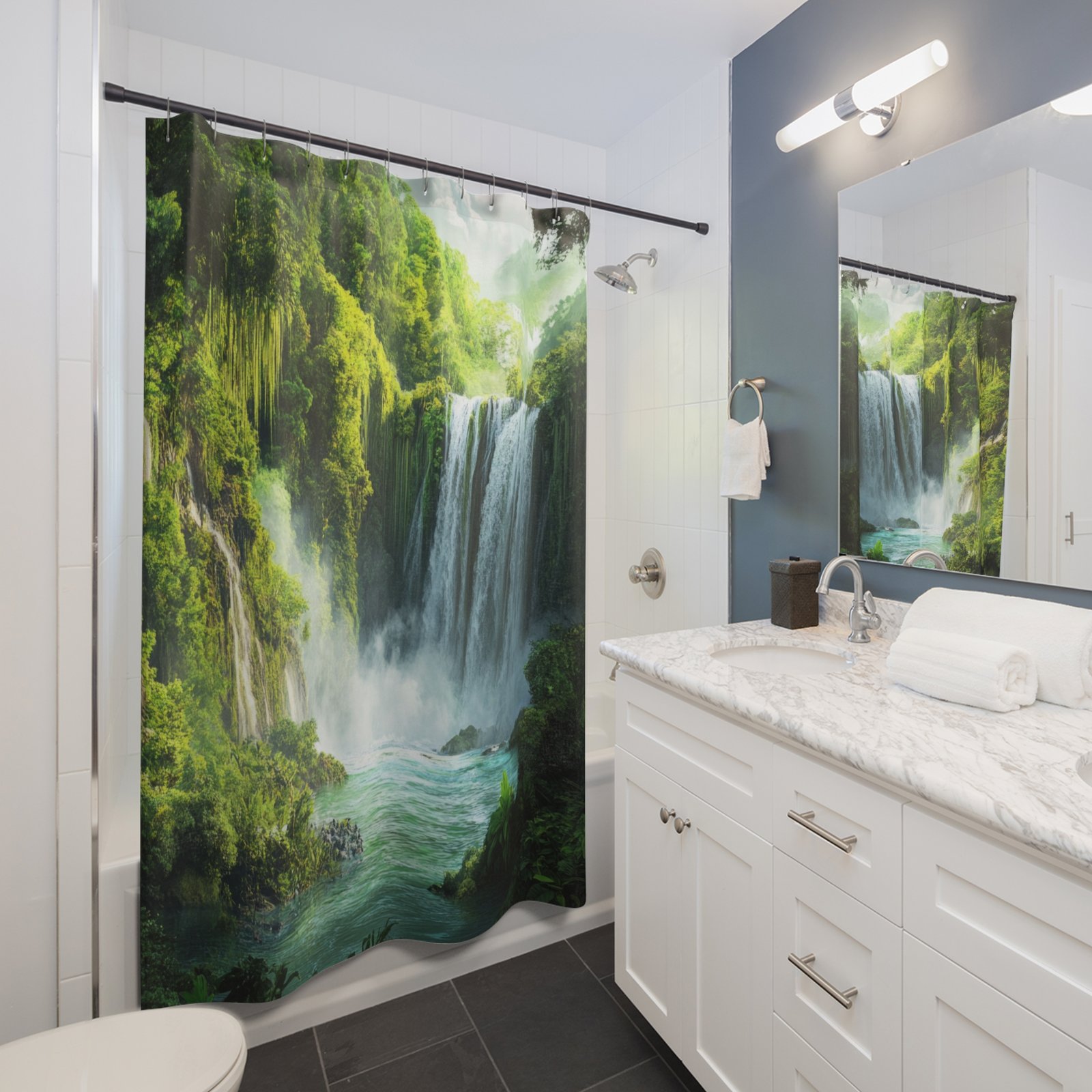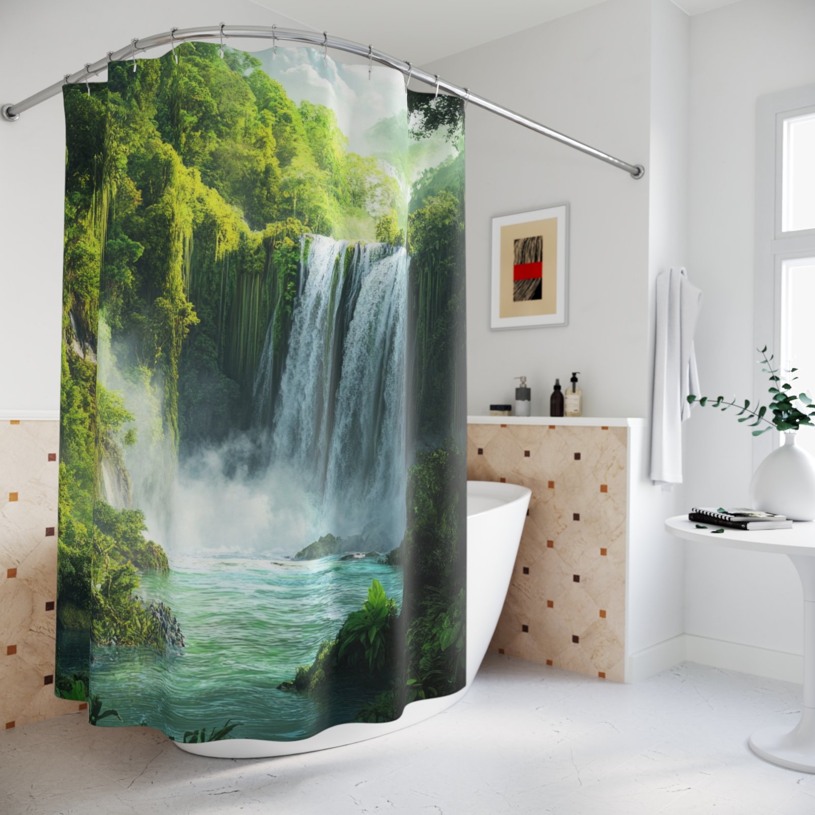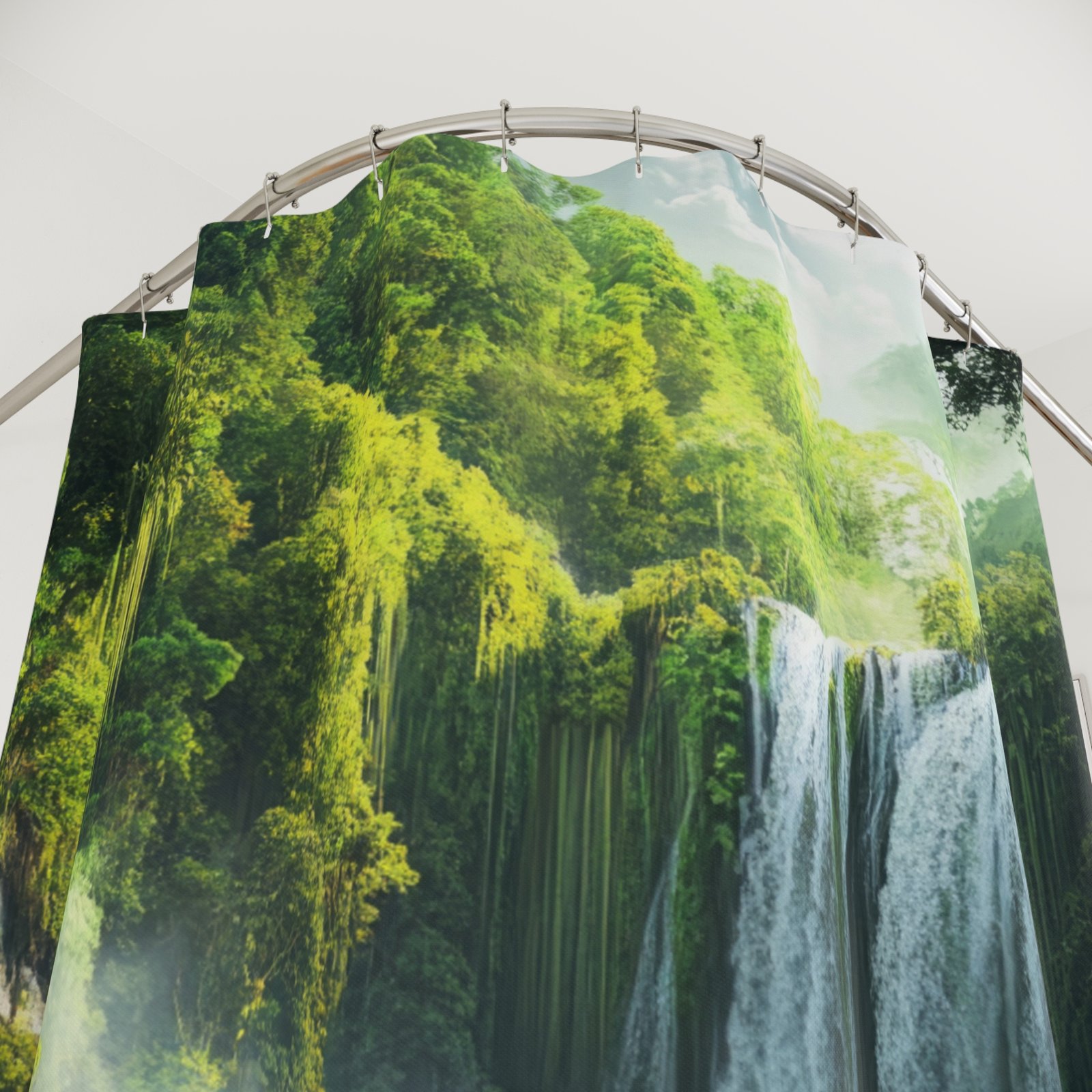 Transform your bathroom into a serene oasis with this stunning Shower Curtain. Featuring a breathtaking design that captures the essence of nature, this shower curtain imparts a calming atmosphere to your space. Perfect for those who appreciate art and tranquility, it effortlessly complements modern and traditional decor alike. Ideal for use in the home or as a thoughtful gift for housewarmings, birthdays, or even holidays like Earth Day. This shower curtain invites relaxation and a touch of elegance into your daily routine, making every shower feel like a retreat.