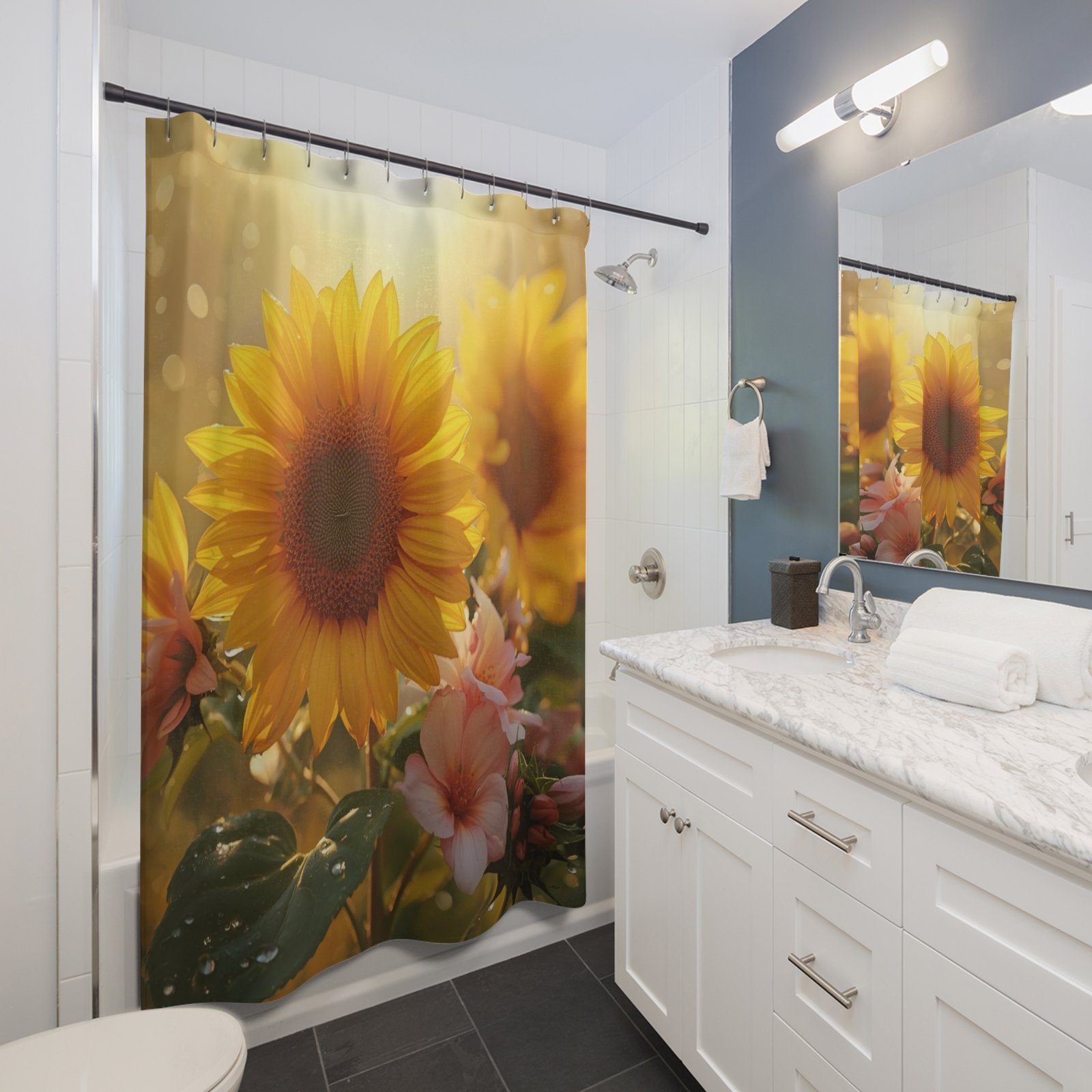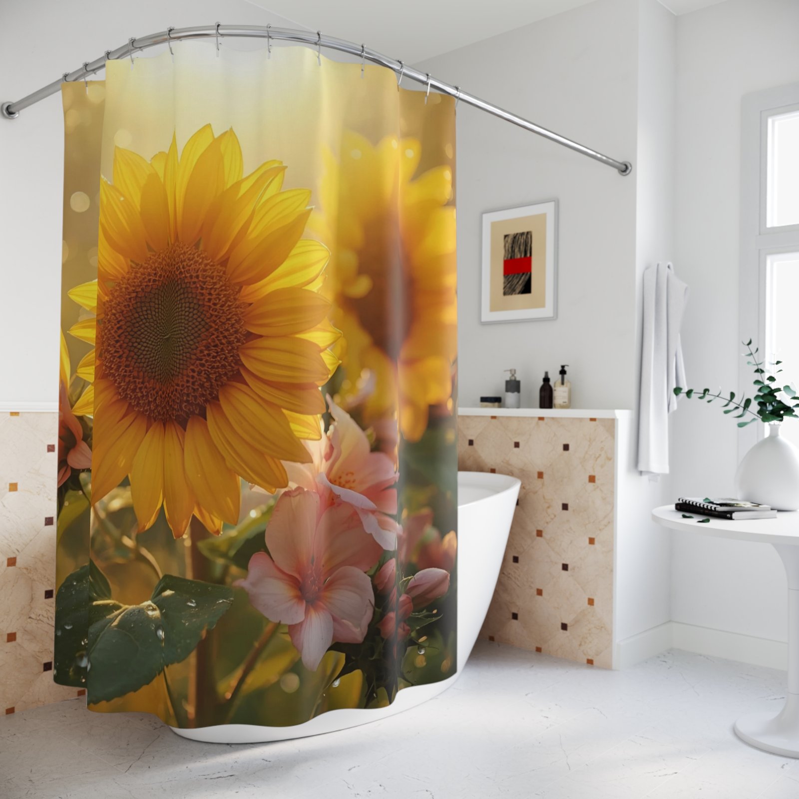 Transform your bathroom into a serene floral oasis with this stunning shower curtain, featuring captivating sunflowers and vibrant blooms. The warm, inviting design creates a cheerful atmosphere that brightens your space and lifts your spirits. Perfect for those who love nature-inspired decor, this shower curtain is an ideal addition to any home. Whether you’re refreshing your bathroom for everyday use, preparing for spring cleaning, or looking for the perfect housewarming gift, it caters to all occasions. This product appeals to nature enthusiasts, home decorators, and anyone looking to add a splash of color to their daily routine. Ideal for holidays like Mother’s Day, summer gatherings, or simply as a thoughtful present for friends and family.