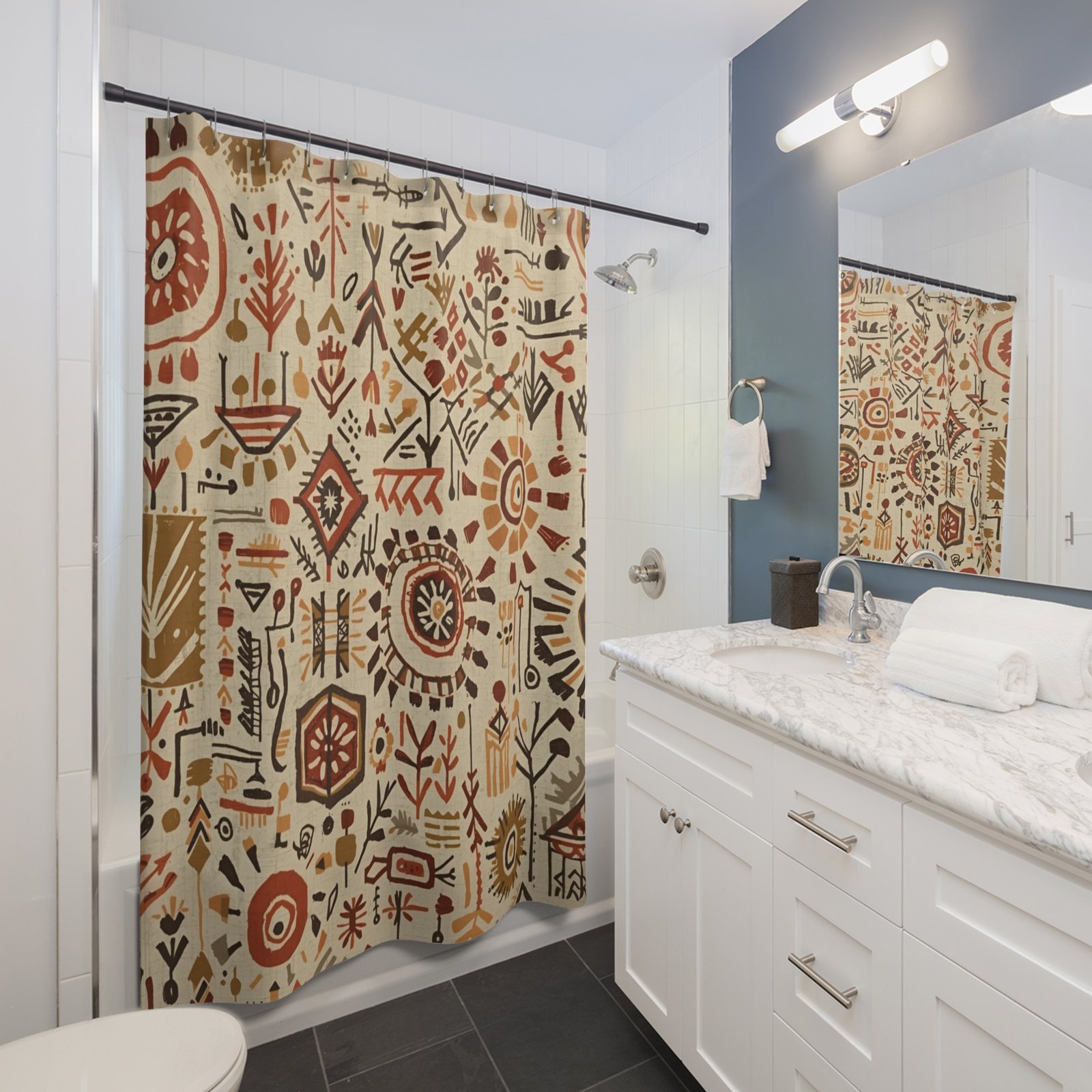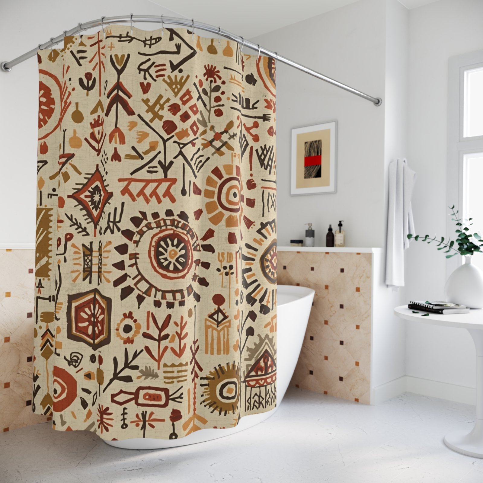 Transform your bathroom into a serene retreat with our stunning Shower Curtains. Featuring a captivating design that seamlessly blends earthy tones and intricate patterns, this shower curtain brings a touch of artistry into your daily routine. Crafted from durable polyester, it combines functionality with style, ensuring a fresh and stylish look for your space. Ideal for those who appreciate unique home decor, this product resonates with individuals seeking to enhance their bathroom’s aesthetic. Perfect for any occasion, whether you’re sprucing up your home for a holiday gathering or simply looking to refresh your living space, this shower curtain adds a sense of warmth and creativity. Suitable for adults, it’s a thoughtful gift for housewarmings, weddings, or even a cozy self-care afternoon.
