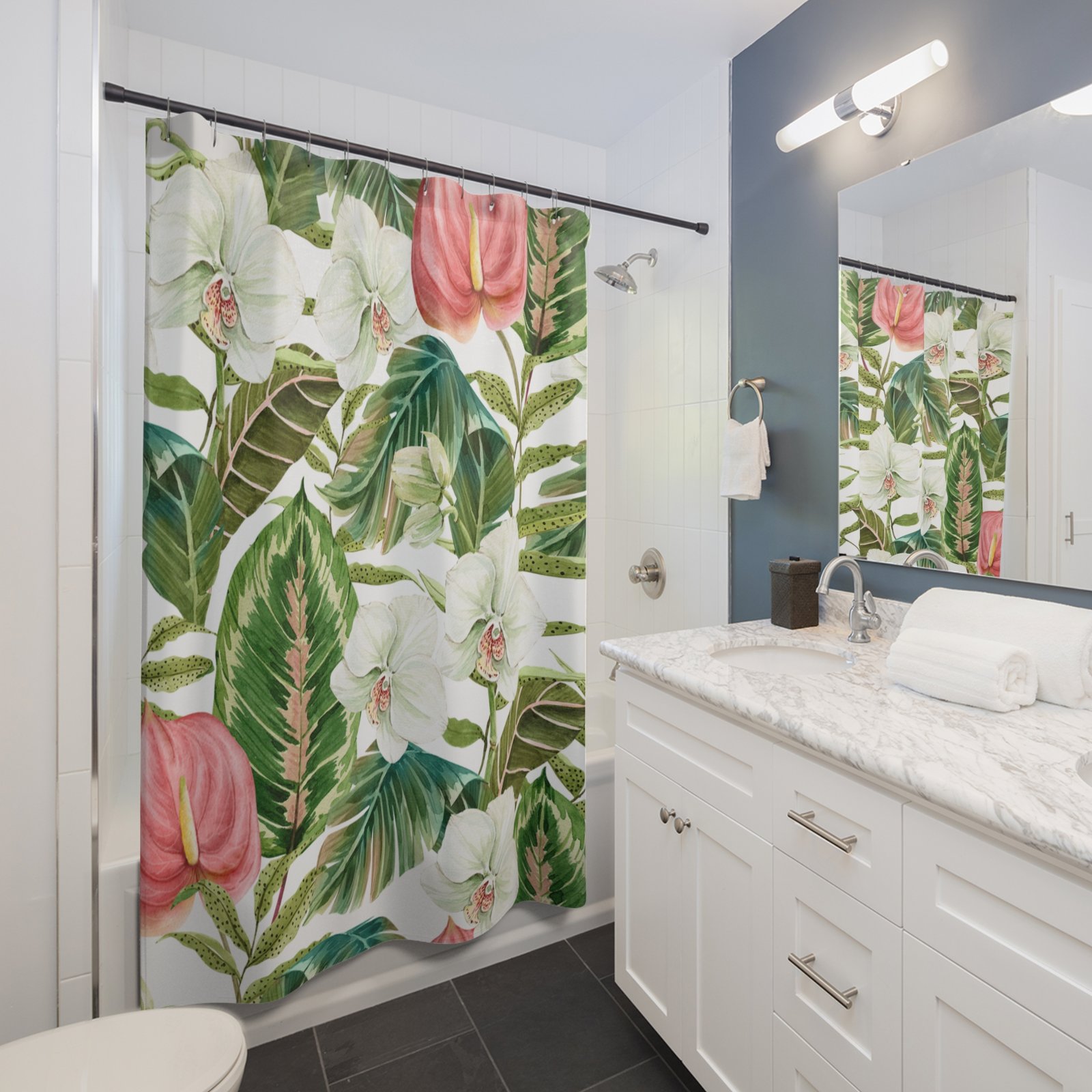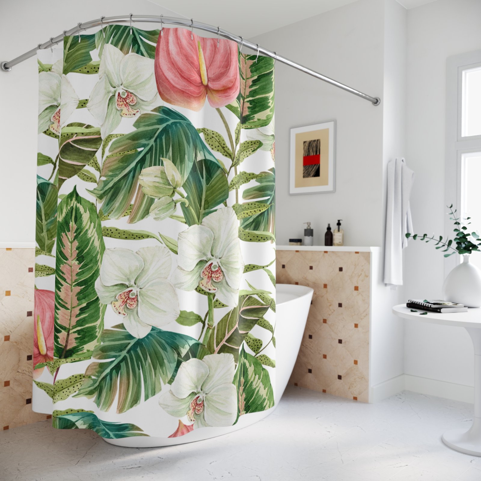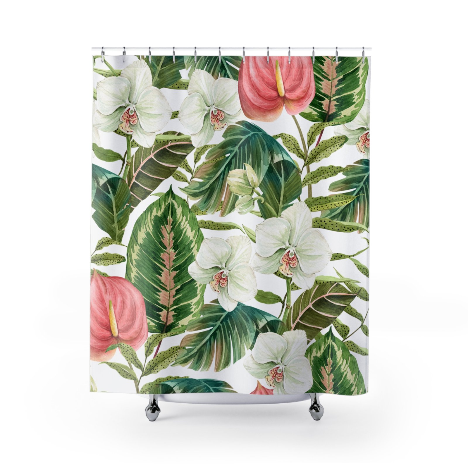 Transform your bathroom into a serene oasis with this beautifully designed shower curtain. Featuring a stunning floral pattern of vibrant orchids and lush green leaves, this product brings a touch of nature indoors, elevating your daily rituals. The bright colors and intricate details create a refreshing atmosphere, perfect for those who appreciate a blend of modern elegance and natural beauty. Ideal for nature lovers and anyone looking to add a pop of color to their space, this shower curtain is perfect for everyday use or as a thoughtful gift for housewarmings, birthdays, and holidays like Spring or Earth Day. Enhance your shower experience and make a statement in your bathroom with this stylish addition!